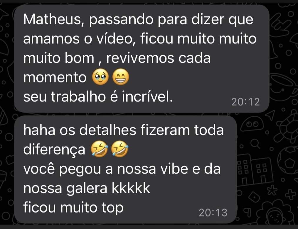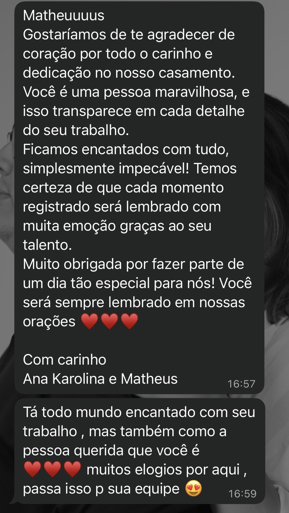 Com o tempo me especilizei na fotografia e logo após em cinematografia, hoje entrego filmes autorais, elegantes e atemporais para clientes exigentes.