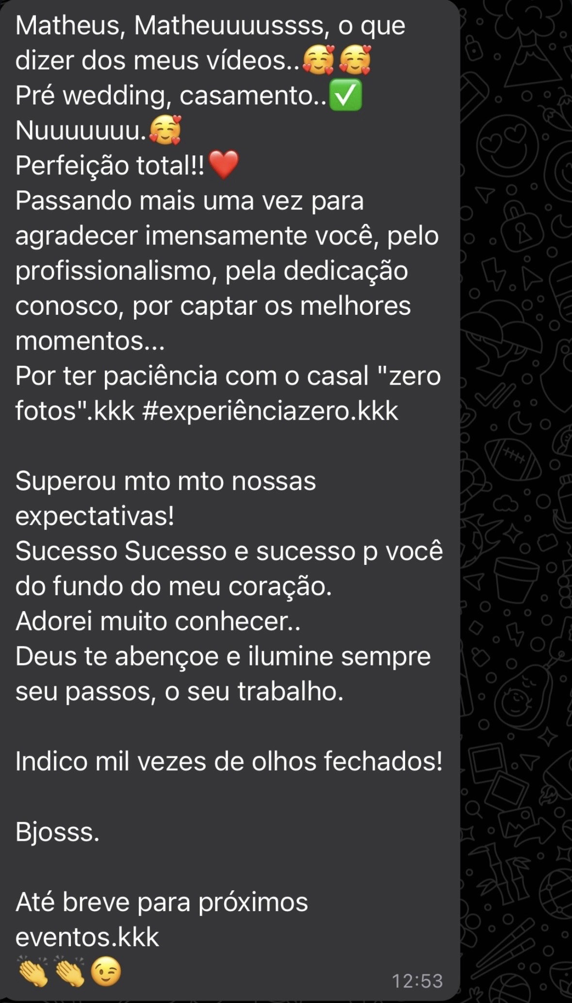 Dessa foram o registro desse dia é garantido com qualidade e profissionalismo que só um cineasta pode proporcionar.
